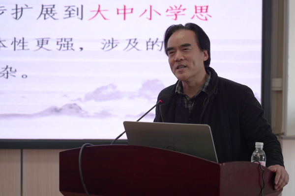 3月9日,陕西师范大学出版总社《中学政治教学参考》杂志主编黄建炜应邀到ok138cn太阳集团古天乐交流,作题为“大思政育人,我们一直在路上”的主题报告。来自学校各教学院部的25名辅导员现场聆听报告,并与黄主编进行座谈交流。储建学院党委副书记周辉主持活动。