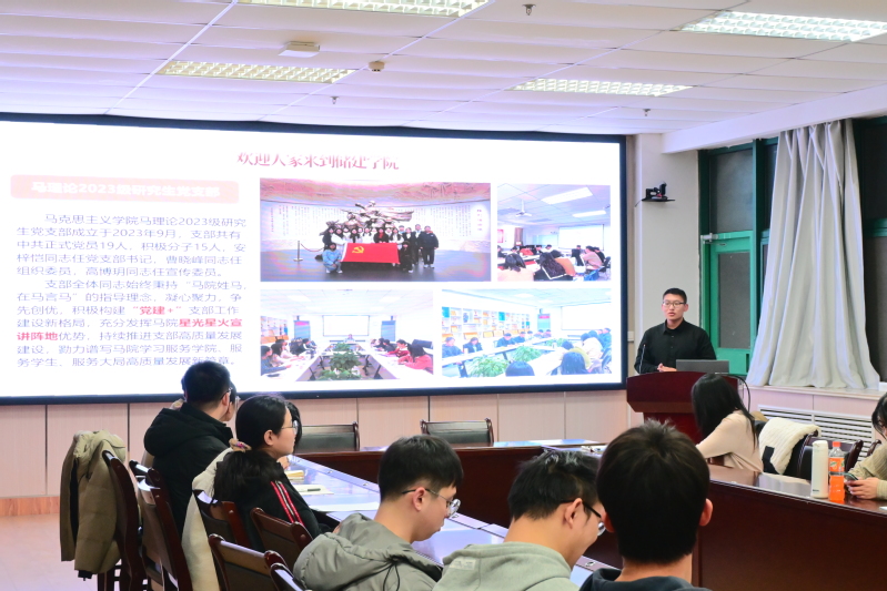 图2 马克思学院研2023级党支部组织委员曹晓峰介绍支部情况