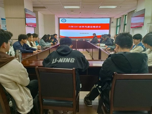 3月27日,学院组织力学2201班开展学风建设推进会,辅导员李峰弼主持会议,学院党委副书记周辉、力学系党支部书记黄小光、力学2201班班主任张毅参加会议。力学2201班班长崔继仁针对班级情况做了汇报,整理和分析了班级第一课堂、第二课堂的成绩,介绍了班级目前针对学风的工作方法,指出了目前班级学风所存在的问题,并对班级未来工作做出了计划。邵磊同学从个人的角度分享了自己对优良学风与各类赛事、科研之间关系的看法。班级其他同学也针对班级学习问题进行了交流。随后,黄小光结合班级同学课堂上的表现,给出了建议,并希望同学们加强与老师的交流,提高听课质量,提高学习成绩。张毅也结合班级日常开展的工作,指出班级目前存在的一些问题,对重点课程给予了指导。周辉最后指出,力学2201班有良好的基础,希望师生共同努力,采取切实有效的方式方法,形成具有自己力学特质的学习品牌,班级要尽快制定具有自己特色的班级学风建设方案,通过有效方案落实培育班级良好学风,打造班级成为更加优秀的集体。