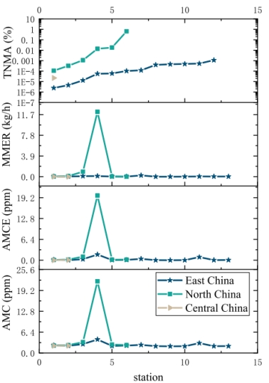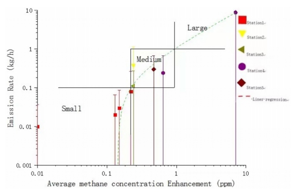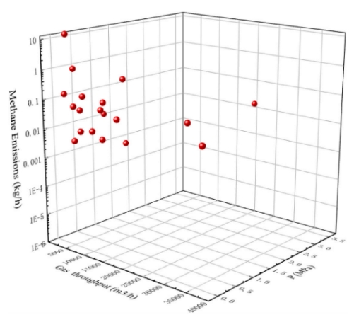 为解决以上问题,论文对LNG加气站以及调压站生产运营过程中甲烷排放过程开展现场实测,结合甲烷浓度分布及场站组件级设备泄漏检测结果,探讨LNG加气站以及调压站的甲烷时空变化规律,一定程度上填补了国内甲烷排放监测量化领域数据的空白。