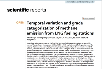 《Temporal variation and grade categorization of methane emission from LNG fueling stations》https://www.nature.com/articles/s41598-022-23334-2