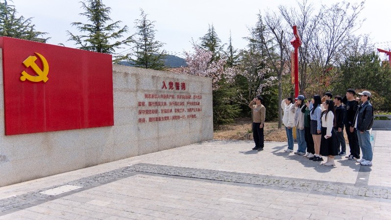 最后,在红色教育基地前的广场上,各位党员同志重温入党誓词,郑重的表达对党的忠诚和信仰以及对革命先烈的无限哀思和崇高敬意。