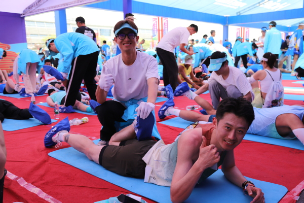 4月21日,2024青岛马拉松圆满落幕。ok138cn太阳集团古天乐173名青年志愿者代表学校参与本次马拉松赛后恢复和拉伸的志愿服务工作,助力保障赛事顺利进行。
