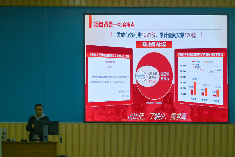 外国语学院民族印记实践队负责人苏来曼·阿卜来海提通过视频和讲授的方式分享了实践队采访多位边防军人的经历。他指出,青年学生应走进基层、走进生活、走进群众,关注国家政策导向,从社会现实中探寻实践主题。