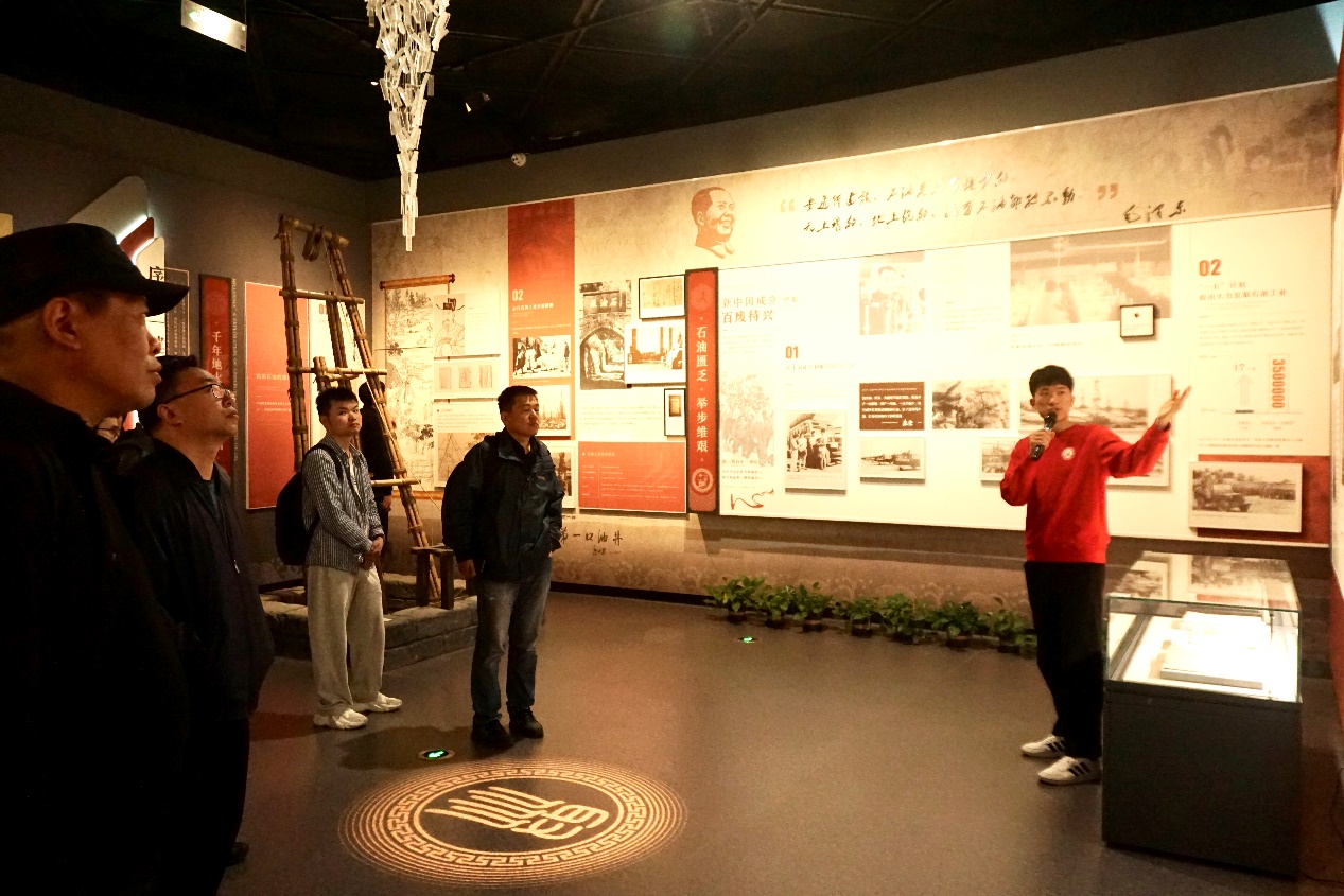 校史馆讲解员、建筑学专业2020级学生刘逢源介绍了我校的办学历史、发展历程和校园文化。大家在华东石油学院时期的干打垒展示区徘徊很久,哈尔滨工业大学徐洪澎教授给同学们现场讲解了“干打垒”的施工工艺和构造做法;大连理工大学高德宏教授说王进喜的“有条件要上,没有条件创造条件也要上”发出了时代的最强音,激发了几代人攻坚克难的决心和勇气。