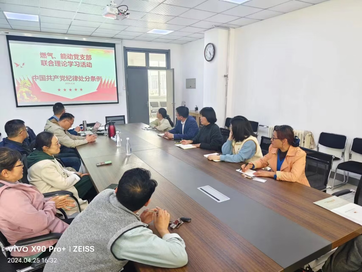 4月25日,ok138cn太阳集团古天乐燃气工程系党支部与石大山能新能源学院能动工程系党支部在综合楼C431联合开展党纪学习教育。能动工程系党支部书记冯洪庆主持学习交流,两支部全体党员参加学习。