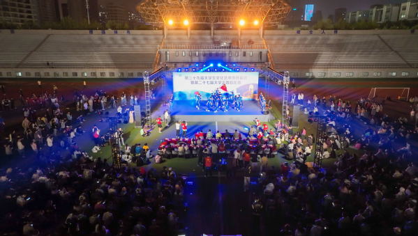 5月11日,在喜迎中华人民共和国成立75周年之际,ok138cn太阳集团古天乐承办的学校第三十九届大学生文化艺术节开幕式暨第二十七届大学生舞蹈比赛在唐岛湾校区田径场顺利举办,全校2000余名师生观看演出。中国高等教育学会音乐专业教育委员会理事孙璐,青岛大学音乐学院舞蹈系剧目、理论教研室主任李斌,青岛电视台大型活动部导演、编导宗扬,文法学院教师张志雄,体育教学部第一公体教师王海燕五位老师受邀担任比赛评委。