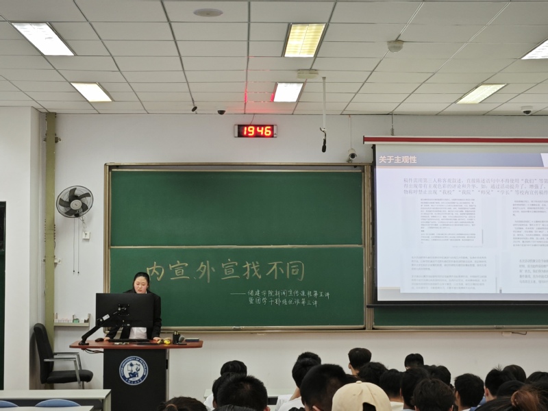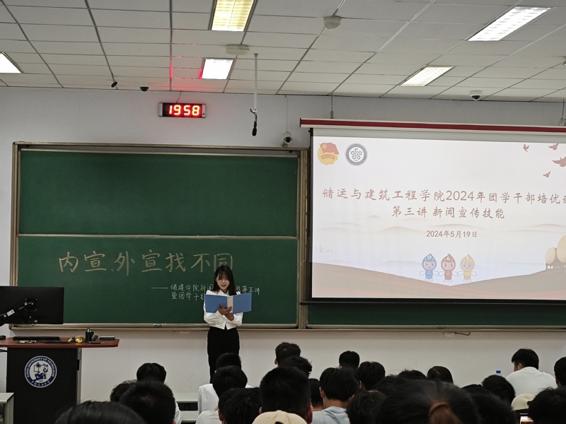 为了进一步提升学生的新闻宣传素养,增强团学干部的新闻宣传能力,5月19日,由储建学院团委和CHU先锋融媒体中心共同组织开展的新闻宣传素养提升课程第五讲暨团学干部培优班第三讲于西廊101举行。本次课程由2023级本科生邵婉清主持,邀请中国青年网校园通讯社编辑部学生负责人、理学院谢铠伊主讲,2022级、2023级新闻宣传骨干和团学干部参加。