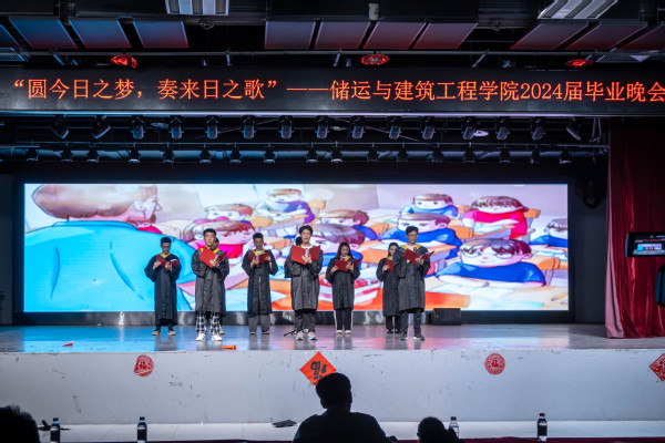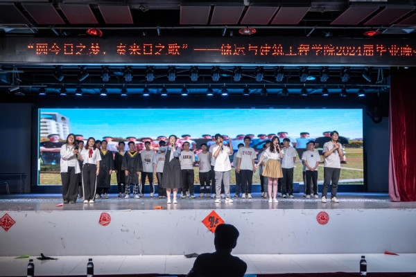 晚会在器乐合奏《La La Land》中拉开帷幕,激扬动感的节奏彰显了青春向上的活力;力学2002带来的歌曲《违背的青春》,用悠扬的旋律诉说怀揣梦想、一路奋斗的青春故事;建环2001、2002带来的光影剧《我们毕业了》唤起毕业生们大学生活中的点点滴滴的回忆,军训、考试、竞赛等记忆犹在眼前;2023级本科生臧一璇、张兴祖、吕季霖为学长学姐门深情献唱歌曲《想见你》,激起大家对美好时光的怀念;储运2002、2004合唱《我们的明天》,抒发对大学同窗间深厚情谊的不舍和对美好未来的憧憬;节目中穿插着互动游戏环节,让现场气氛更加热烈欢快。随后,储运2001、2003、2005共同带来朗诵《亲爱的同学谢谢你》,表达了对母校依依惜别的心声;王梦琪、张荣航、刘雪莹领唱,全体毕业生跟唱歌曲《凤凰花开的路口》,让整场晚会在深情悠扬歌声中缓缓落下帷幕。