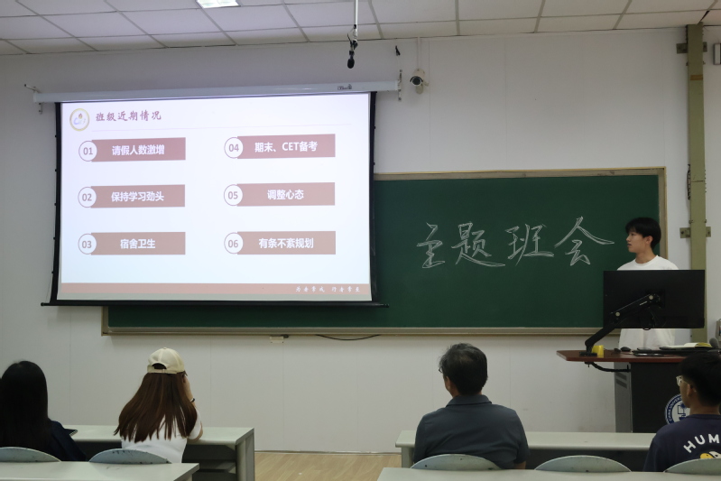 班会期间,学生代表陈皓阳讲述了自己的学习小组的学习方法;李瑞竹提到在学校中要保证自律,平衡“玩”与“学”的关系;李镓易强调了在大学生活中要坚持体育锻炼,强健的体魄才是认真学习的基础。
