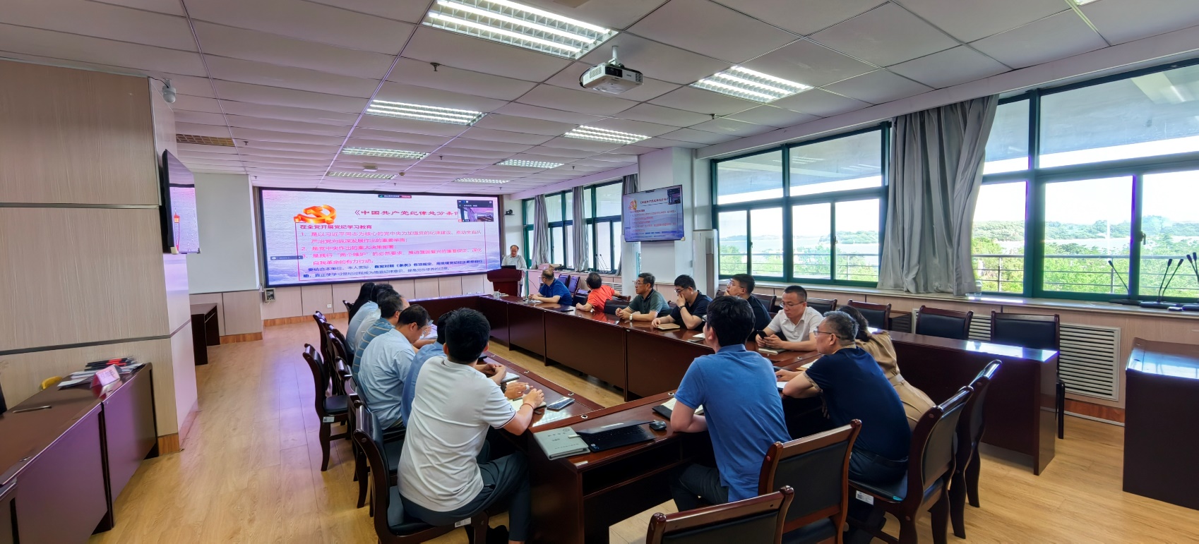 会上,储运工程系党支部书记王武昌同志开展了主题为“严遵党纪、为人师表”的专题报告。他指出作为高校党员教师,应增强“四个意识”、做到“两个维护”,严守党纪,不发表传播有严重政治问题的言论,不组织或参加宗教、迷信活动,不组织参加反党、反社会主义活动,遵守工作纪律、落实立德树人,坚守生活纪律、为人师表。油气储运杂志社刘博同志开展了“铁纪铸魂,行稳致远——学习张伟同志党纪学习教育讲话精神”为主题的报告,从纪律铸魂、铁军护航、期刊人的思与行等三个方面进行了分享。油气储运杂志社组织委员刘朝阳同志领学《中国共产党章程》中“党的纪律”、“党的纪律检查机关”;纪检委员赵佳雄同志领学“研究总院纪法小课”。