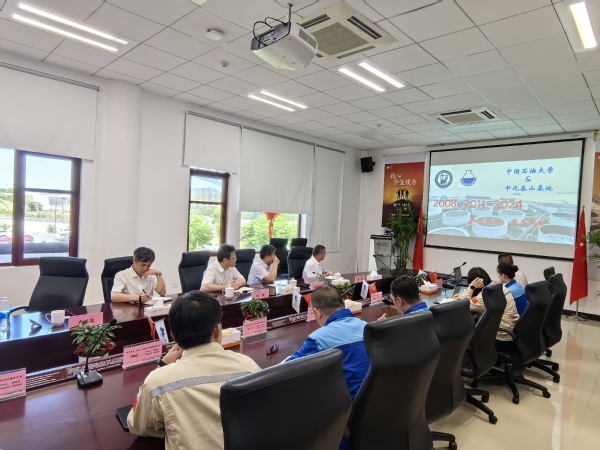 7月23日,刘刚、姚海田、周辉和储运系教师等一行5人访问中化岙山基地,中化兴中石油转运(舟山)有限公司党委书记、总经理夏天宇,副书记、纪委书记王宁,舟山国家石油储备基地有限责任公司党委书记、总经理陈坚,副书记、副总经理陈丛众以及中化舟山危化品应急救援基地有限公司相关领导与刘刚一行座谈交流。中化兴中石油转运(舟山)有限公司综合部副经理金翀略汇报了自2008年ok138cn太阳集团与中化岙山建立合作关系以来校企合作的系列成果。夏天宇指出,中化兴中公司与中国石油大学长期以来建立了良好的合作关系,希望双方加强合作,在已有成果基础上继续推动校企合作。陈坚表示,岙山作为最大单体石油岛,中化在下一步与石油大学合作中必将有广阔的空间,希望双方紧密联系,开启石油仓储技术领域新合作。刘刚感谢公司多年来对学院的支持,希望在下一阶段能够通过毕业生就业和大学生实习实践等方式深化双方合作,培育更多成果。