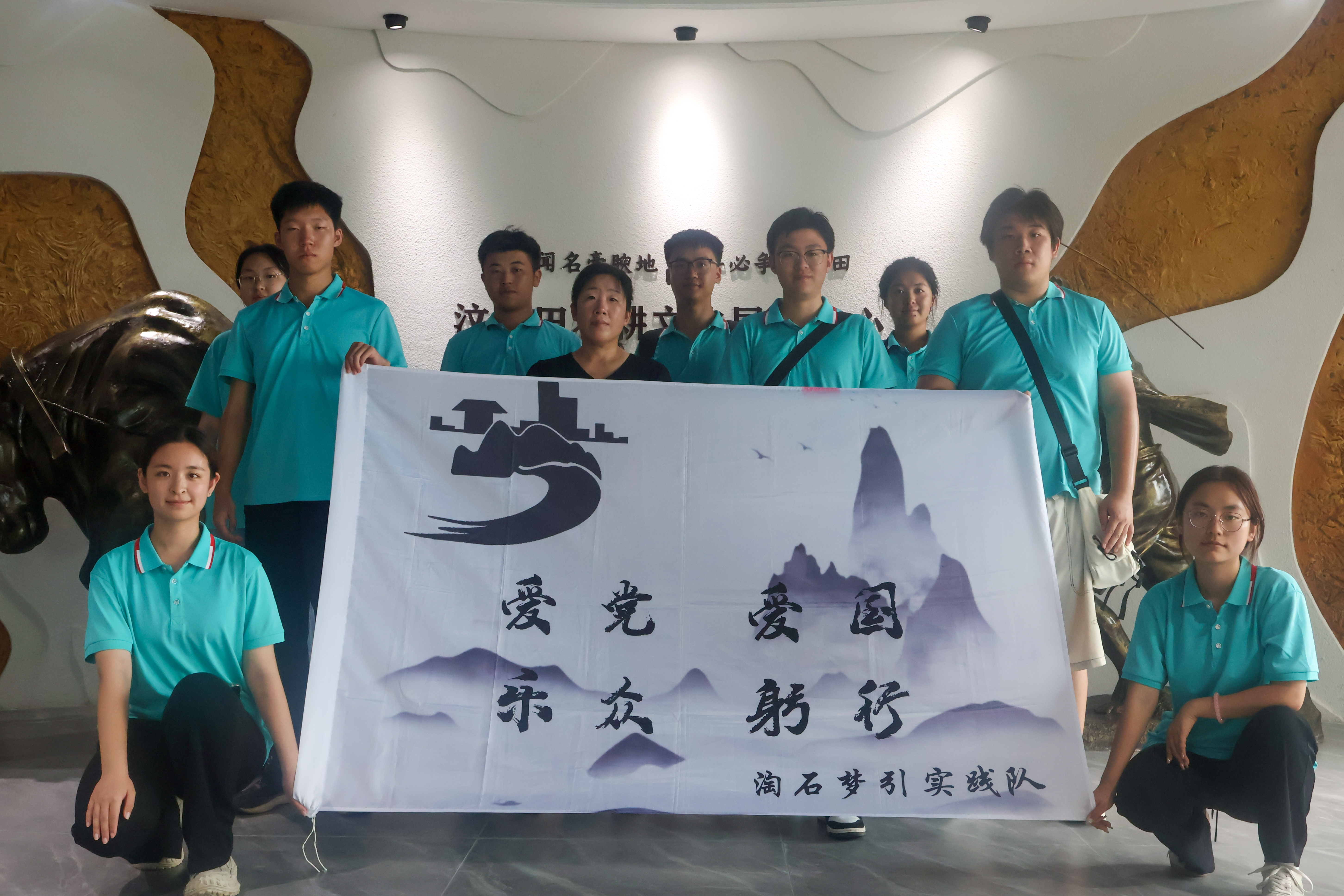 实践队在汶阳田农耕文化展示中心合影 靳若帆摄