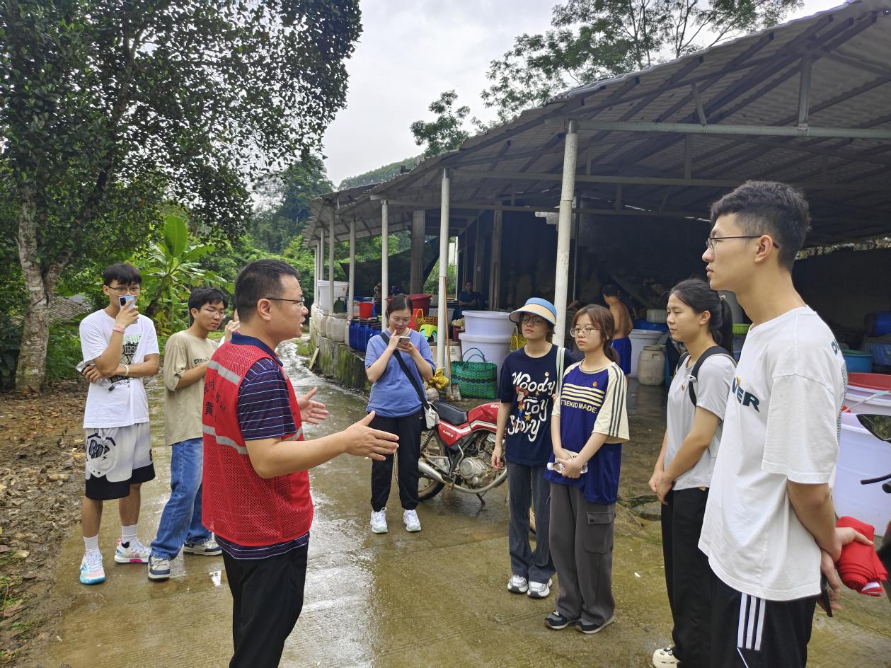 实践队的首个考察点是村集体的蛋鸭养殖场。队员们亲眼见证了蛋鸭在自然放养条件下的生活状态,黄书记解释说,这种模式不仅保证了鸭蛋的高品质,也体现了“绿水青山就是金山银山”的可持续发展理念。安民村在保护水源的同时,有效推动了村集体经济和人居环境的双重提升。