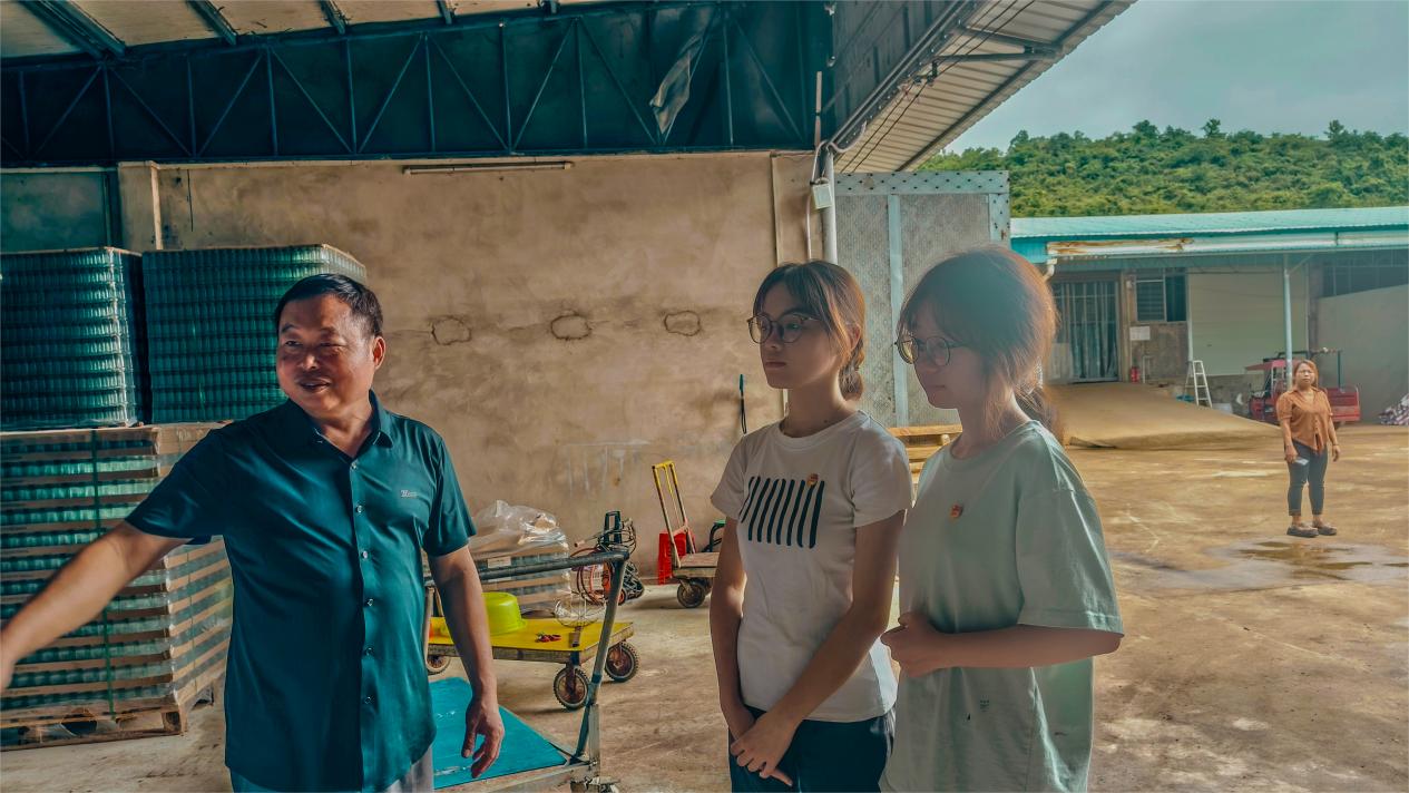 进入公司厂房后,公司执行董事兼总经理黄连生向实践队队员介绍了公司基本情况,双方就产品线、市场定位、销售网络等问题进行深入探讨,实践队队员提出了拓宽产品销售渠道、提高产品质量、加强品牌故事塑造、提升产品竞争力、打造龙州辣椒酱名片等建议。