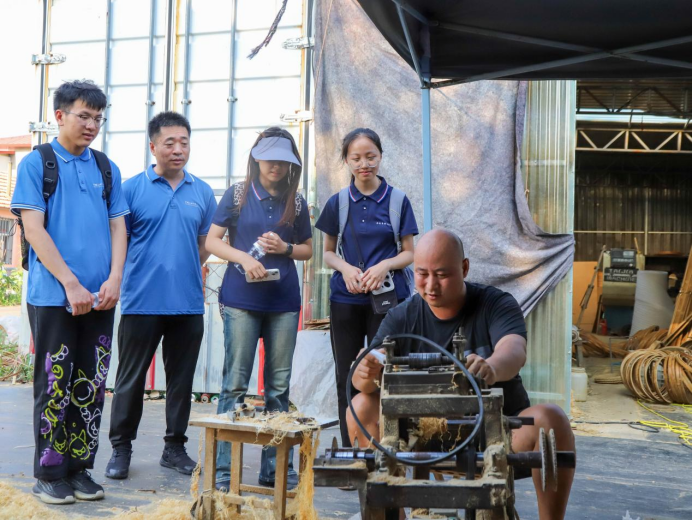 “龙行九州实践队”调研崇左市龙州县广西四叔食品公司生产线,了解辣椒酱生产全过程,结合所学知识和实际,提出了建立“农户+企业”合作模式、发展订单农业等策略来解决销售难题,着力打造龙州辣椒酱特色名片。实践队深入甘蔗种植基地,队员们不仅亲身体验并完成直播销售任务,还在果农指导下参与甘蔗采收,制作农产品宣传视频。