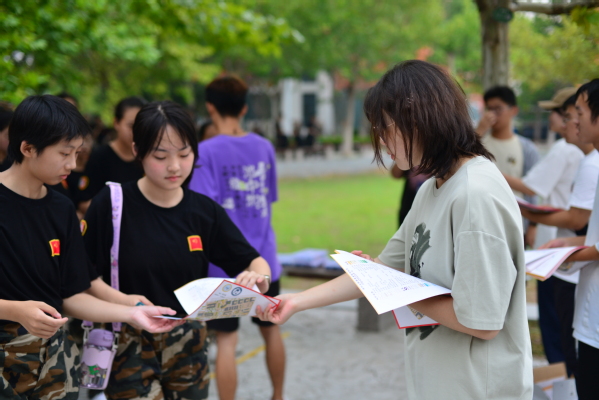9月4日晚,学院邀请定向越野协会成员杨睿为学生们讲解军训定向越野识图用图竞赛培训,确保参赛学生了解竞赛基本流程、掌握定向越野的基本知识和打卡方法。杨睿提到,本次校园定向赛实行男女分别组队,每队由两人组成,共享一张指卡,各持地图一张。学校要求参赛学生在限定时间内依据地图寻找校园内预设点位并完成打卡,同时需自行规划高效路线以争取最短完成时间,并在终点记录成绩。