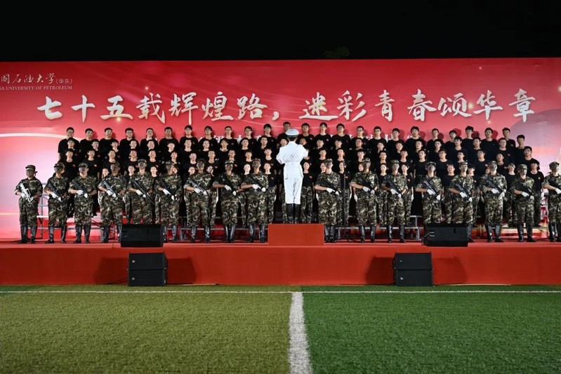 储建学子们以整齐划一的方阵向全校师生展现学院昂扬向上、朝气蓬勃的风貌。