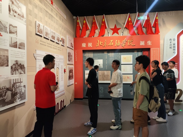 同日,团支部成员参观校史馆,跟随讲解员的脚步,来到了序厅雕塑“石大荣光”前,进入“石油魂·石大人”专题展厅和“墨香石大”艺术馆中,瞻仰优秀先辈的事例,感受以铁人精神、大庆精神为核心的石油精神。校史馆是传承优秀传统文化和感悟石大情怀的载体,汇聚了广大师生的智慧的结晶,团支部成员在这里不仅对学校历史史实、文物资料、先进事迹有了更深的了解,还增强了爱国爱校情怀,激起建设祖国的热情。