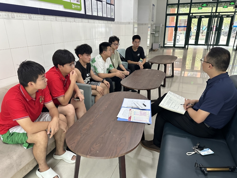 辅导员在宿舍大厅与学生进行交流