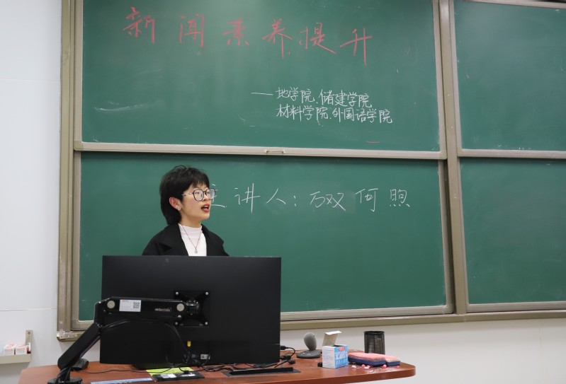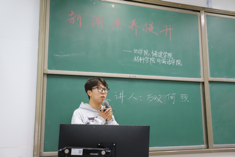 10月30日晚,储建学院、地学院、材料学院、外国语学院于西环201联合举办储建学院新闻宣传素养提升课程第八讲。此次课程由地院传媒中心主席团成员付玉鑫主持,大学生融媒体中心副主席万双,校团委宣传部副部长、地院传媒中心主席团成员何煦主讲,四个学院的新闻宣传骨干共计200余人参加。