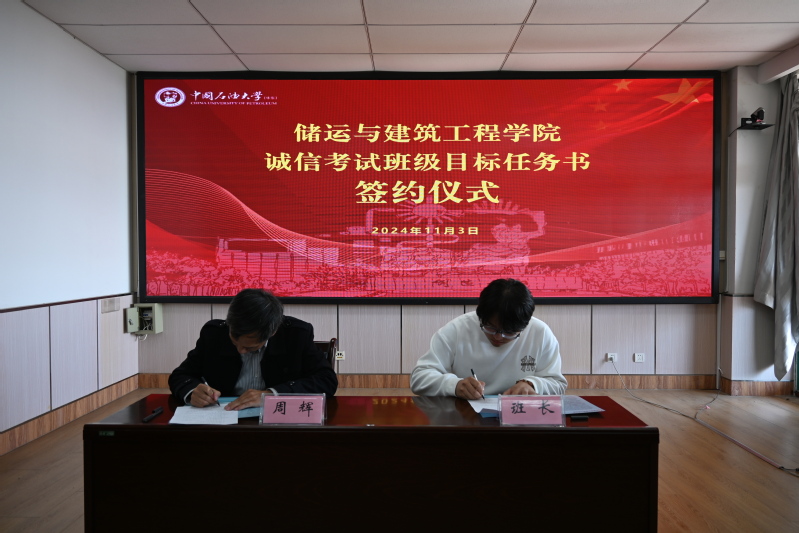 近日,为进一步加强优良学风建设,严肃考风考纪,储建学院以年级为单位组织本科各班级签订诚信考试班级目标任务书,学院党委副书记周辉、本科生各班级负责人分别代表学院和各班级在任务书上签字。