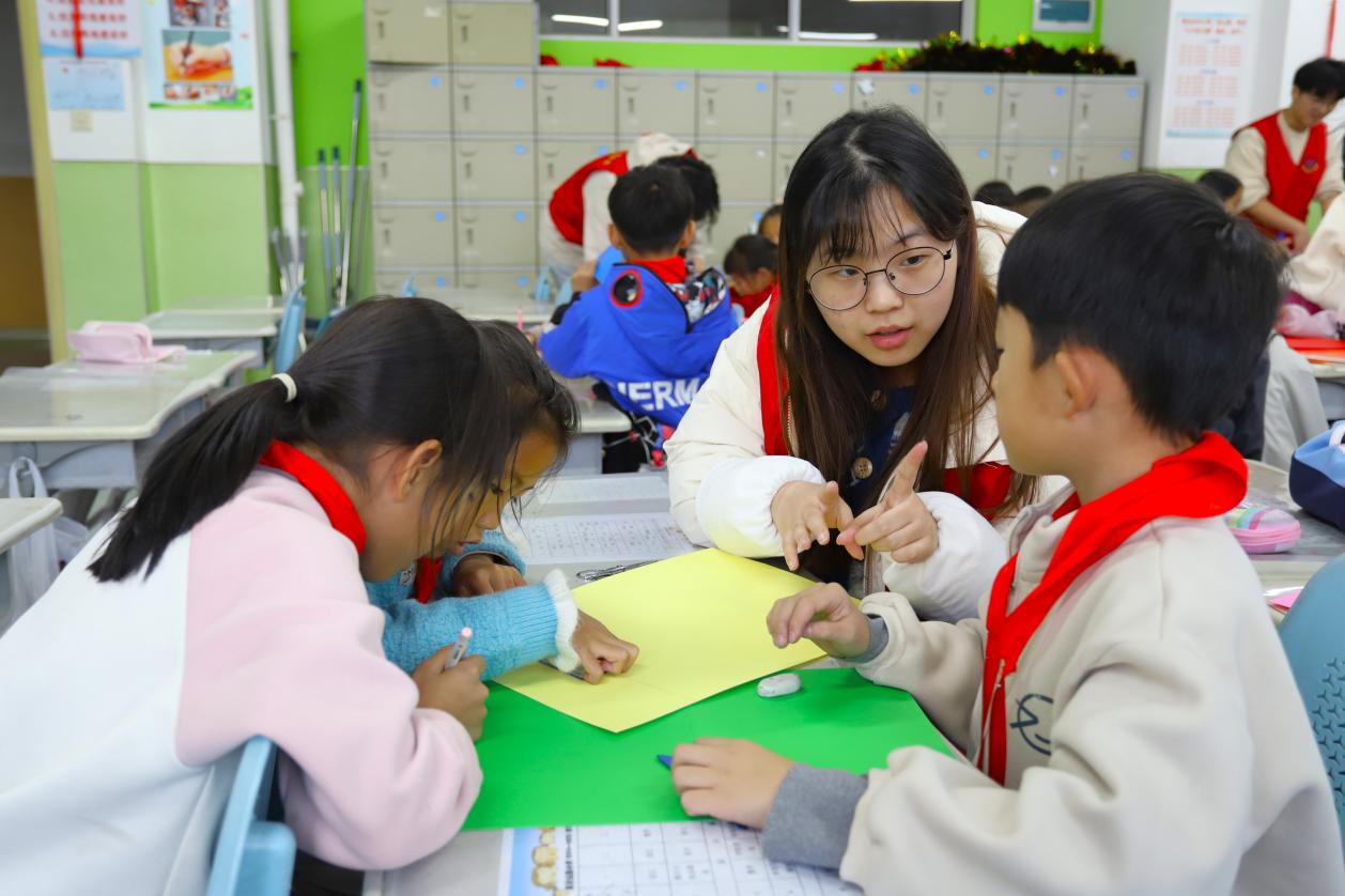 志愿服务队成员帮助小学生做手工 程晨璐摄