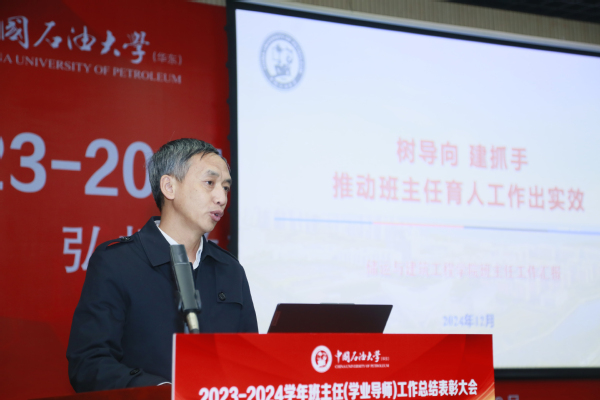 12月10日,学校2023-2024学年班主任(学业导师)总结表彰大会在逸夫报告厅举行,学校党委副书记马国顺,党委常委、宣传部部长赵放辉,机关部处相关领导,各教学院部党委书记、副书记、副院长,以及班主任代表、辅导员代表和学生代表150余人出席总结表彰大会。获评“十佳班主任”的储运2003班主任韩辉上台接受颁奖,叶贵根、许剑峰、李春宝、张毅、陈树军、罗小明、高伟等8位教师获评“百优班主任”,学院党委副书记周辉代表学院做院系班主任工作典型经验分享。