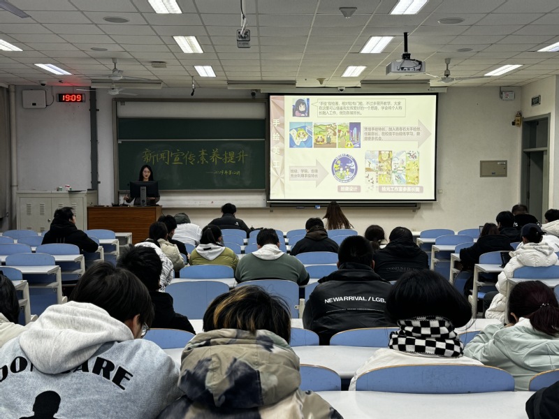 12月14日晚,储建学院在南教205举办2024年新闻宣传素养提升课程第十二讲。本次课程邀请上一届CHU先锋融媒体中心主席团成员建环2101赵定钰主讲,各学生组织、各班宣传负责人、CHU先锋融媒体中心成员参与。