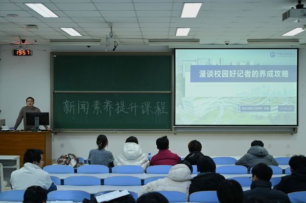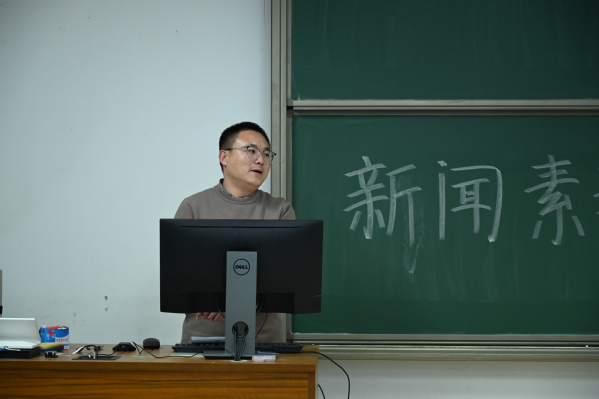 随后,他从新闻出处、结构、创作技巧到采写准备四个方面讲解了新闻采写的策略与方法。他选取几篇新闻稿为范例,结合稿件中的标题拟定、内容结构优化、语言运用等方面讲解新闻采写知识。最后,郑健鼓励同学们积极投身校园新闻采写实践,敏锐捕捉校园动态,传递思政教育价值。