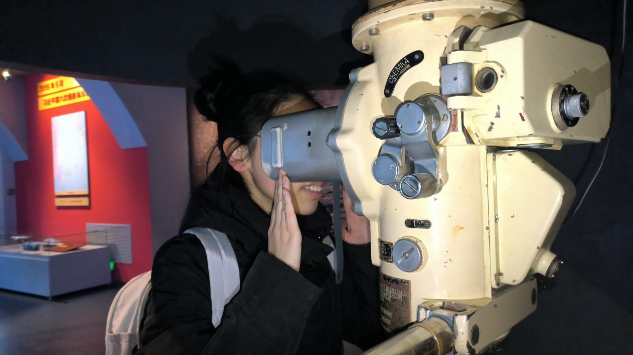 随后,实践队员前往“改革开放、乘风破浪”展区。在工作人员的讲解下,实践队员学习了人民海军在改革开放背景下,如何紧跟国家发展步伐,逐步实现现代化的历史进程。实践队员在“强国强军、挺进深蓝”展区,通过照片、荣誉墙和VR设备等,直观了解了现代海军的成就和精神,体验了指挥飞机启航,并且欣赏了舰艇的海上风景。活动最后,实践队员在博物馆电子屏上留下了对人民海军的崇高敬意和美好祝愿,并表达了对海军英雄的深切缅怀。
