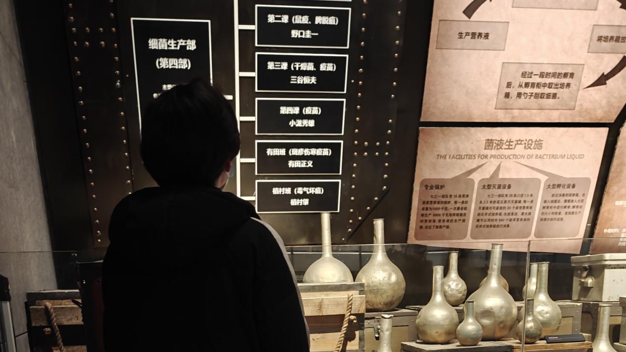 在讲解员的引导下,张子成来到抗战历史展区,了解侵华日军第七三一部队的历史背景及其在侵华战争中的角色,以及研发细菌武器和进行人体实验的相关历史,感受到对中国人民造成的深重伤害。随后,张子成来到了实物展区,观看了大量历史文物,包括实验器具、档案文件以及受害者的遗物。从一件保存完好的实验记录册中,张子成了解到日军进行人体实验的过程和结果。