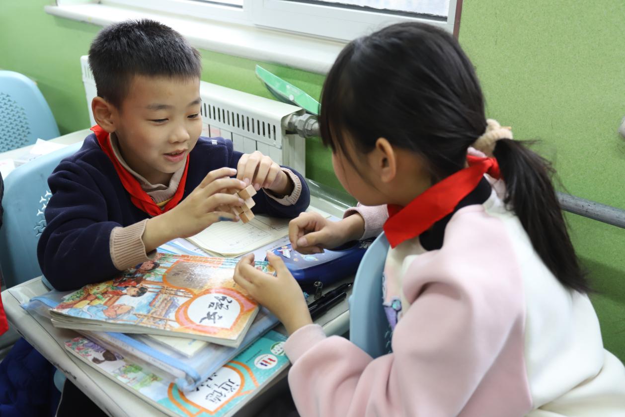 小朋友们在解鲁班锁 胡雪薇摄