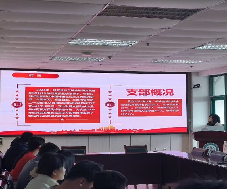 为深入学习贯彻习近平新时代中国特色社会主义思想,巩固深化党纪学习教育成果,研究生油气综合处理党支部于3月17日召开2024年度组织生活会。会议聚焦“加强党纪教育,推动中国式现代化”主题,通过“学思想、查问题、抓整改”三步走,实现政治体检与党性锤炼双提升。上级党委督导组李峰弼同志列席指导,支部20名党员参会。