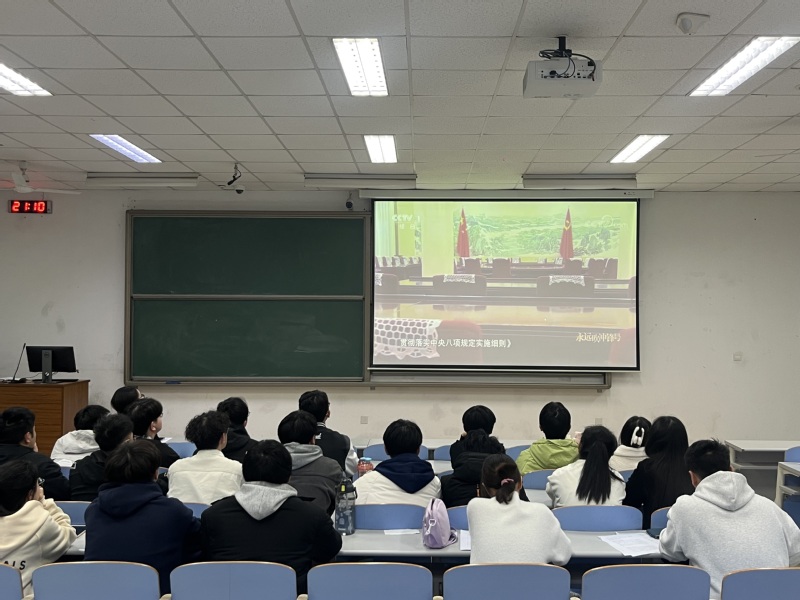4月1日晚,储建学院2022级学生党员在南教109开展主题党日活动,深入贯彻中央八项规定精神学习教育。活动由2022级辅导员李峰弼主持,辅导员王燕和2022级全体学生党员参加学习。