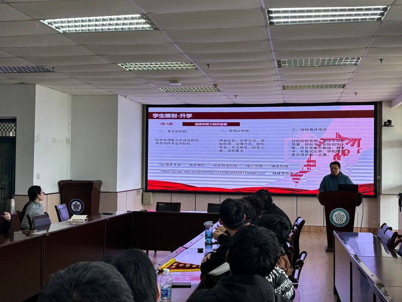 班会的核心环节聚焦于升学与就业规划。丛建栋分享了考研和就业的相关信息,建议同学们早做准备,充分利用学校就业指导中心官网和微信公众号等资源平台。班主任蒋文明发言,为同学们提供了宝贵的升学就业建议,辅导员王燕给出了近几年储运毕业生升学和就业的具体数据,为同学们提供了未来规划指引。