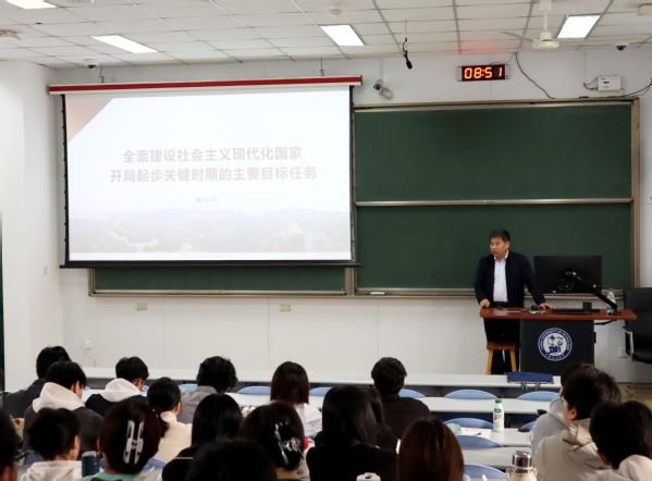 开班仪式结束后,姚海田以《全面建设社会主义现代化国家开局起步关键时期的主要目标任务》为题进行授课。他带领大家系统回顾了全面建设社会主义现代化国家的伟大历程,深刻剖析了当前开局起步时期的主要目标任务以及如何牢牢抓住开局起步的关键时期。面对世界百年未有之大变局,姚海田鼓励参训学生要持续强化专业本领,积极担当作为,抓住时代机遇将个人理想与国家发展紧密结合,以实际行动投身全面建设社会主义现代化国家的伟大实践。