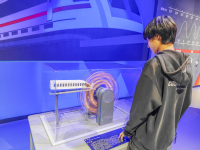 团员们感受磁悬浮列车原理 李小凯摄