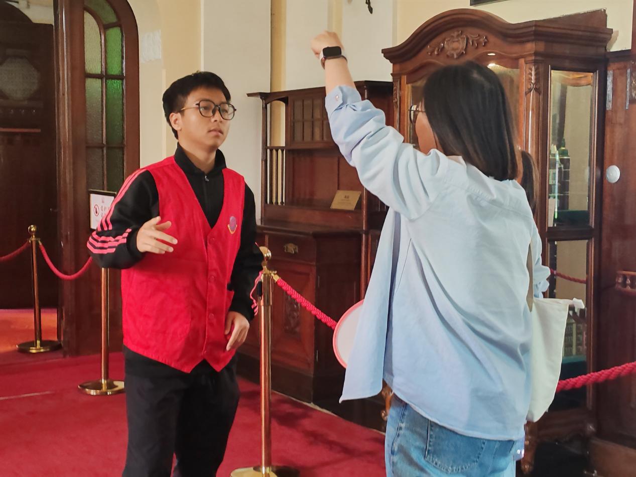 “听了讲解才知道,每块瓷砖、每架钢琴都有故事。”游客李女士在参观后表示,通过讲解员的串联,百年建筑从“观光景点”变为 “可触摸的历史年鉴”。博物馆宣教部负责人王老师评价:“召旭服务队的知识储备与叙事能力,有效还原了历史真实性,让历史建筑的阐释体系更具现代传播力。”