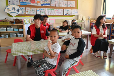 团支部成员引导幼儿回答问题 钦宇帆摄
