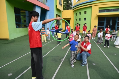 团支部成员与幼儿完成游戏 钦宇帆摄