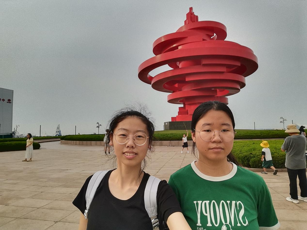随后,实践队至五四广场观看“五月的风”雕塑,了解其以螺旋上升火红造型象征五四运动反帝反封建爱国精神与民族力量,认识到五四运动是政治觉醒起点及中国青年角色转变的转折点,随后在雕塑下共同朗诵《共产主义宣言》。