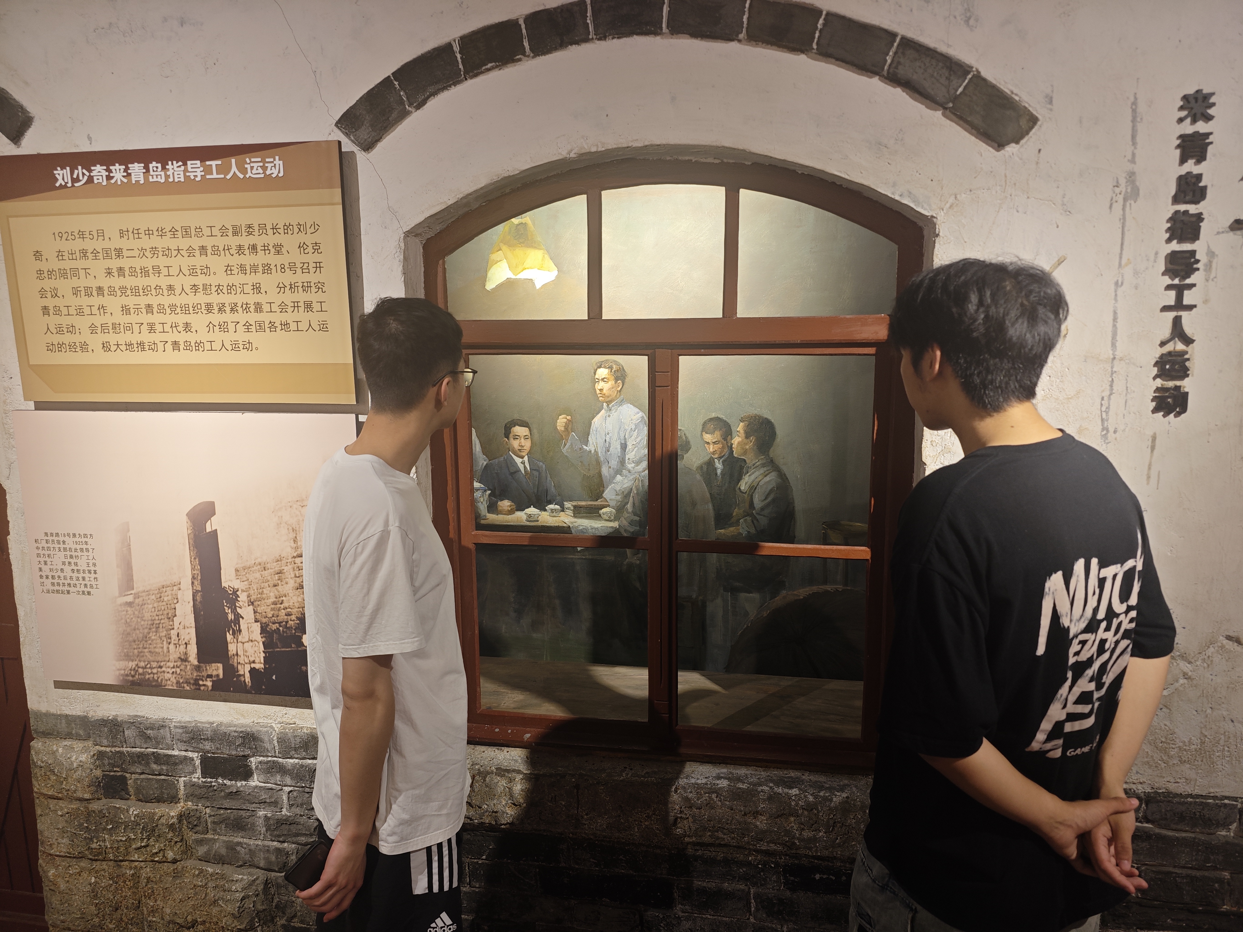 活动伊始,实践队员通过阅读纪念馆前的导览牌,了解到中共青岛党史纪念馆是1923年青岛首个党组织的诞生地及早期革命活动中心,随后在纪念馆前的党旗雕塑处整齐列队,行注目礼。接着,队员们走进以“光辉历程——中共青岛历史展”为主题的基本陈列展厅,依次参观“峥嵘岁月”“艰辛探索”“波澜壮阔”“砥砺奋进”四个主题展览区,通过观看历史照片、文献资料及《信仰》等党史专题片片段,了解青岛党组织自1923年建立以来的革命奋斗历程、在工业和港口建设等领域取得的成就。最后,实践队员移步至纪念馆的入党宣誓墙前拍摄集体合影。