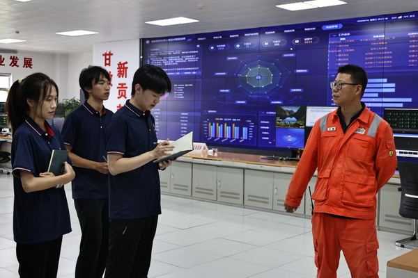 在甘磊主任的引导下,实践团首先参观了智能中控室。通过现场讲解及纪录片展示,师生们深入了解了原油库在高效智能计量技术、国产化设备应用以及SCADA系统平台方面的创新实践,并具体学习了云搜索能力、光纤与地震预警系统、设备维护及储油保障等先进技术,切身感受到兰州原油库在保障国家能源安全中的战略地位。