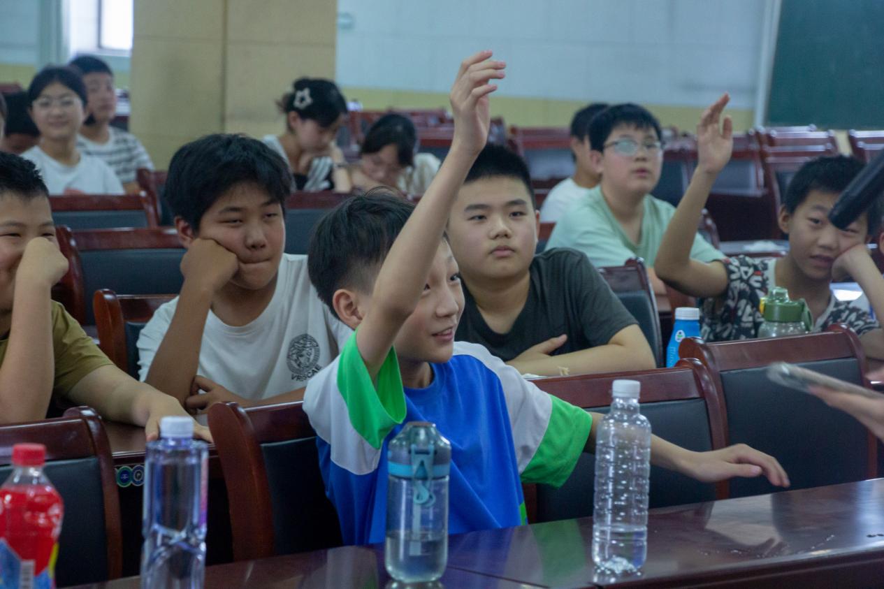 接着,李鹤进行发言。首先,他在发言中感谢了领导和老师的支持,并介绍了支教队的成立时间、使命、发展历程及所获支持。随后,他对此次夏令营的课程安排进行了详细说明,并代表支教队做出了严守教学规范、精进教学质量、秉持育人初心的承诺,强调了学生安全规章制度。开幕式最后,支教队全体成员与全体学生进行合影留念。