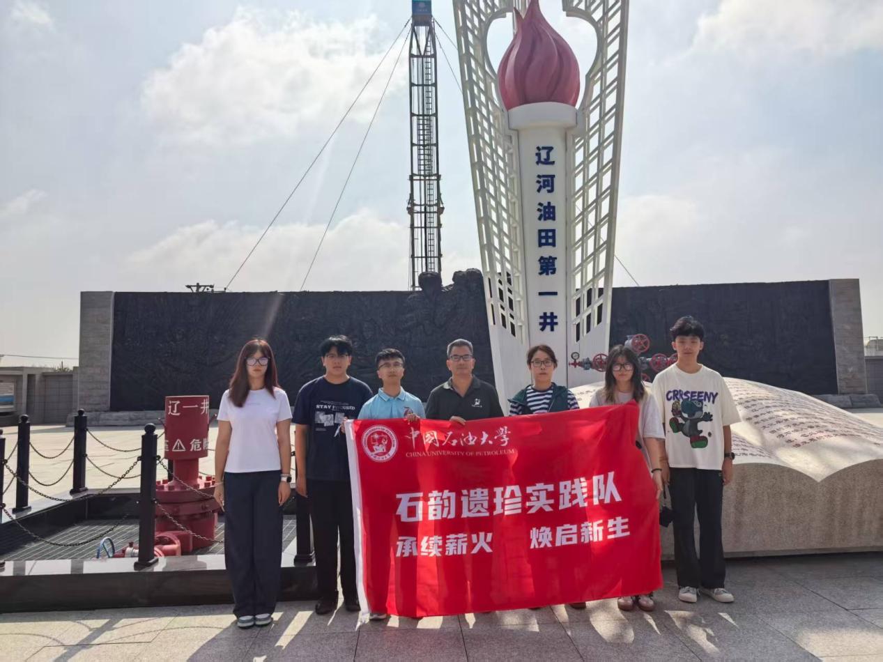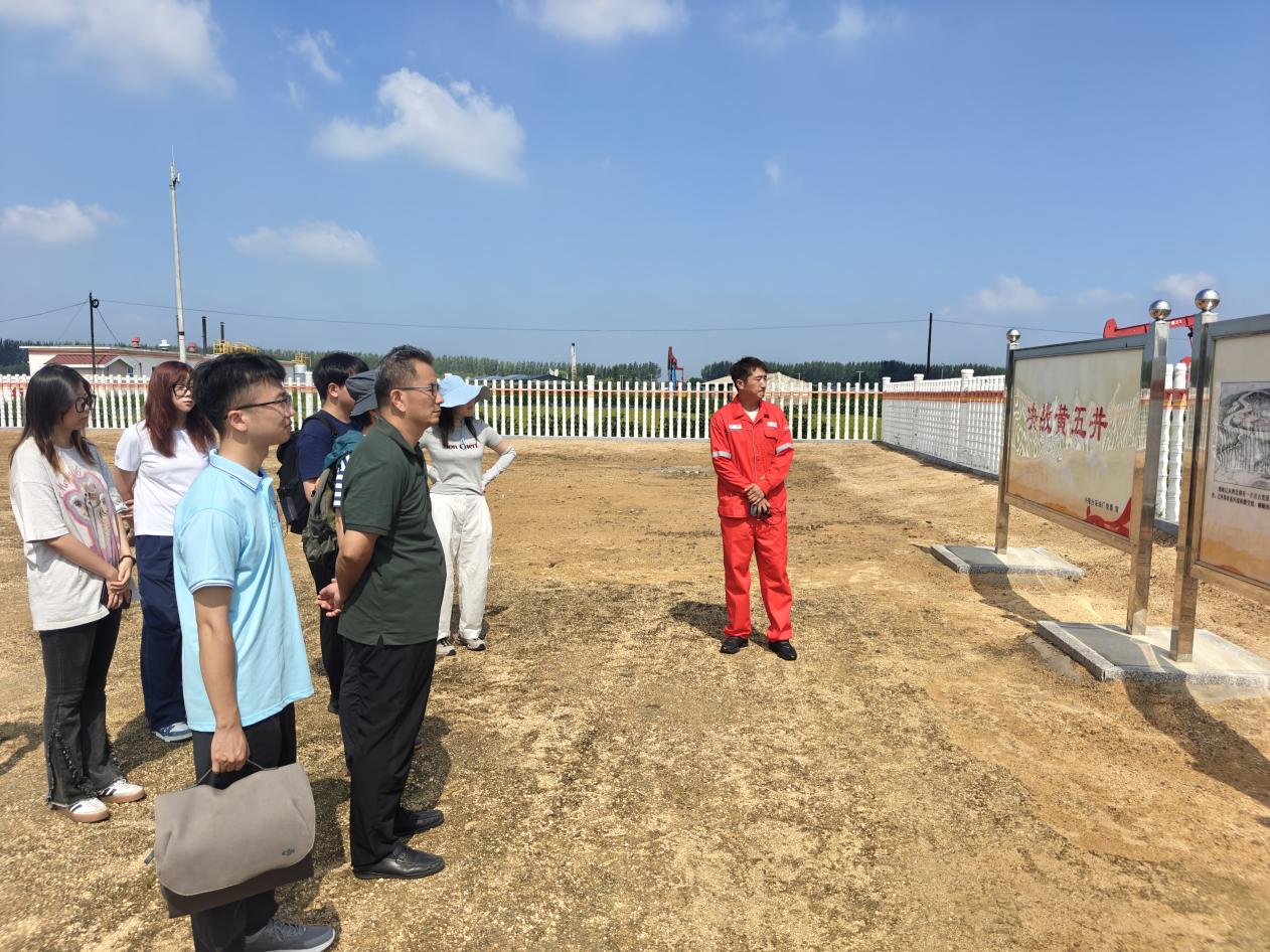 在辽河油田相关工作人员的带领下,实践队深入调研了辽一井、黄五井、石油工业遗产基地。通过实地讲解,实践队员系统了解辽河油田从1970年“南大荒”创业起步,到攻克稠油、高凝油、超稠油开发世界级难题的完整历程。据讲解员介绍,辽河油田地质构造复杂,油品类型多样,老一辈石油人以“千把钥匙开千把锁”的恒心与毅力,实现连续千万吨规模稳产,铸就“世界稠油看中国,中国稠油看辽河”的行业标杆,凝练形成“开拓创新、油稠人不愁”的特种油精神,成为一代代辽河油田人攻坚克难的信念灯塔。