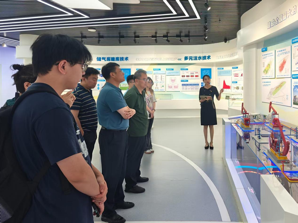 辽河油田石油精神教育基地则以1990平方米的展陈空间,系统呈现了油田50余年发展史。展厅通过历史文物、沙盘模型、多媒体展陈等形式,系统呈现了辽河油田从会战创业到现代化发展的历程。在科技厅,讲解员详细介绍了辽河油田构建的SAGD(蒸汽辅助重力泄油)、火驱、化学驱等五大核心技术体系,尤其是中深层稠油大幅度提高采收率技术,使超稠油采收率提升至35%以上,相关成果获国家科技进步奖28项。参观过程中,2003届校友张凌达与参访师生交流各项技术问题,现场互动氛围专业且融洽。