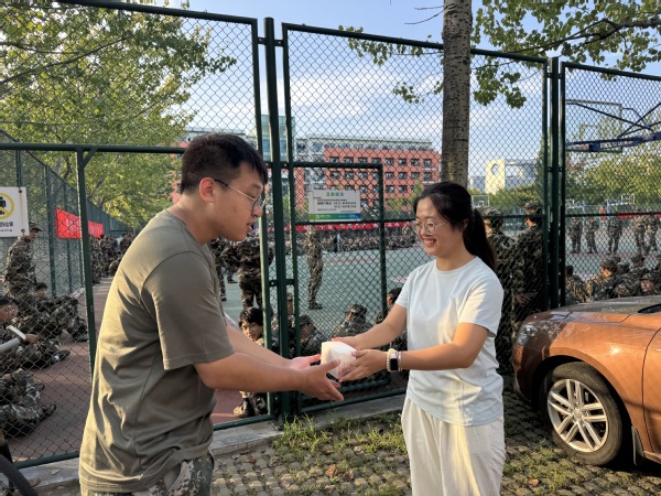 学生会、班团干部等向正在参与军训的辅导员送上节日祝福