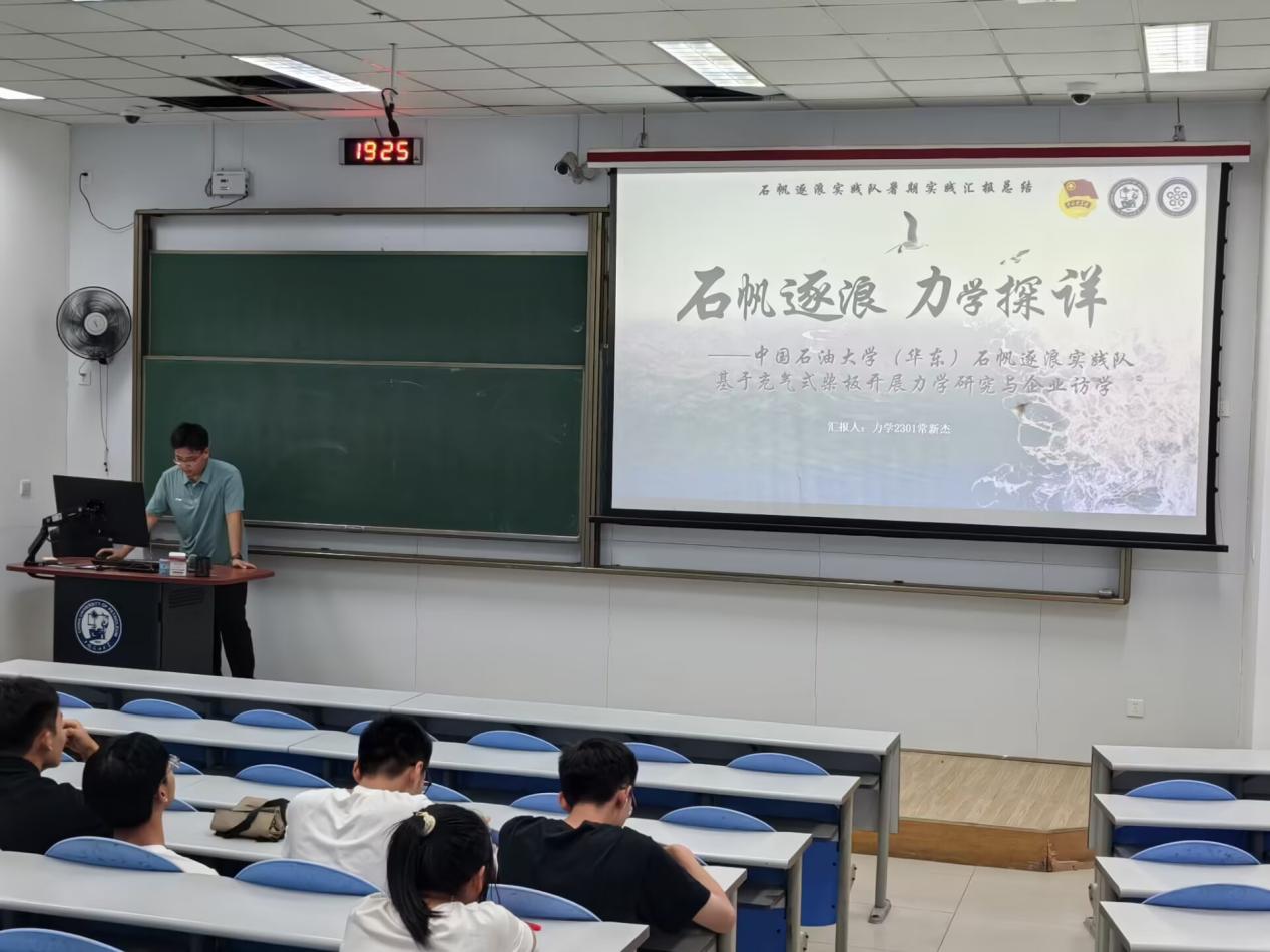 会上,多个实践队通过PPT展示、现场汇报等形式,分享了各实践队在暑期实践中的经历与成果。“能源动脉实践团”聚焦国家能源安全,深入西气东输四线工程,开展长达4000公里的实地调研,形成万字调研报告,并获国家管网公司报道;“沂河兴澜实践队”围绕乡村振兴主题,走进临沂小商品城与乡村一线,提出“商贸+文化+生态”融合发展的新路径;“石帆逐浪力学实践队”结合专业特色,开展充气式桨板力学性能研究,走进多家企业推动产学研结合,累计发表稿件74篇,阅读量超43万;“犁城逐梦实践队”虽仅一人组成,但仍深入基层开展社区服务与青年市集活动,获评“优秀实习实践”荣誉。各实践队汇报内容充实、形式多样,既有扎实的数据支撑,也有动情的实践感悟,充分展现了石大学子“惟真惟实”的学风和“能源报国、乡村振兴、科技自强”的使命担当。