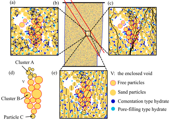 图1 甲烷水合物沉积物细观变形机制的离散元模拟